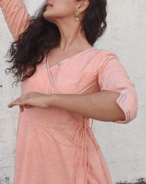 Peach Handspun Angrakha with gota border